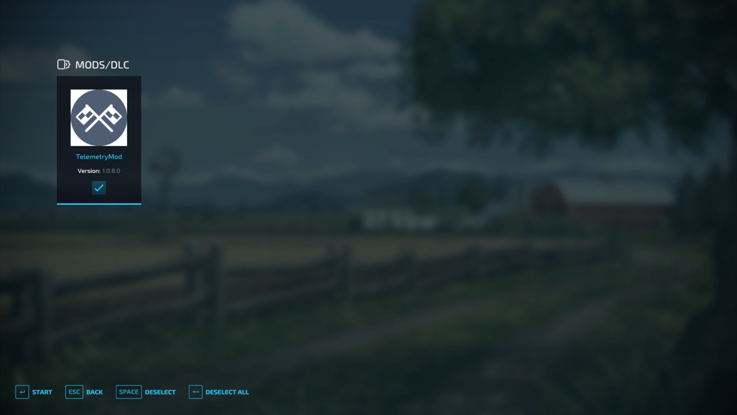 9. Once the TelemetryMod is installed, anytime you start a new game or load a game, you should see the following screen confirming the TelemetryMod will be loaded for the game by having a check-mark in the box. If the box is not check, please check it before launching the game.