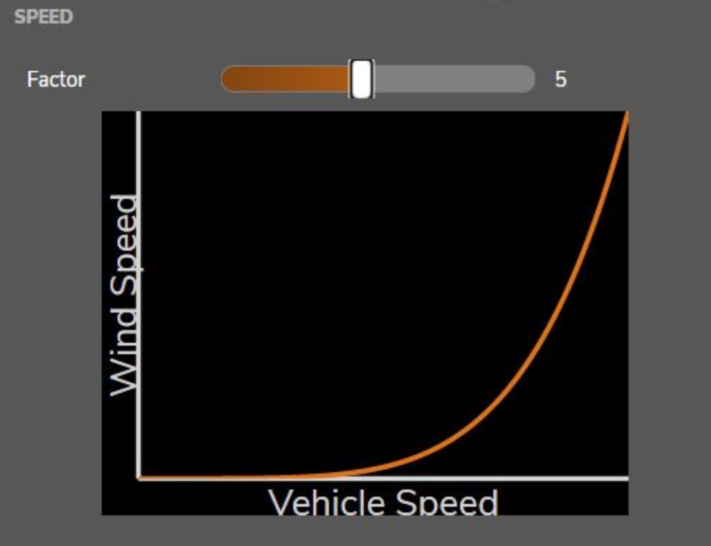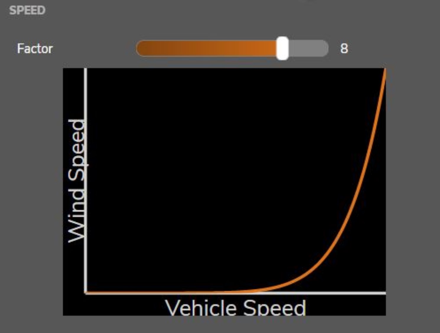 If the Factor is set to 1, it will be a straight ramp up from low power to max power for the fans as the Speed telemetry is obtained from the game.